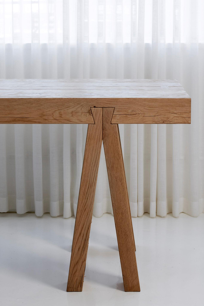 Handcrafted from durable cracked oak, the Dovetail Bench is a stunning addition to any workspace or home office. The desk features a spacious top, measuring 60mm thick, providing plenty of room for spreading out your work. The sculptural legs add a touch of rustic charm to the piece, making it a beautiful and functional focal point in any room. With its traditional dovetail joint construction, this desk offers exceptional tensile strength, ensuring it will stand the test of time. The Dovetail Bench is the perfect choice for those seeking a high-quality, bespoke desk that combines timeless design with superior craftsmanship.